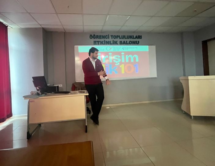 Toplantının konuşmacısı olan İKÇÜ TTO Genel Müdürü Anıl Baybura, öğrenci kulüplerinin proje geliştirme süreçlerinde yararlanabileceği destek mekanizmaları ile girişimcilik ekosistemine dâhil olma imkânlarına ilişkin kapsamlı bir sunum gerçekleştirdi. Baybura, öğrencilerin yenilikçi fikirlerini sürdürülebilir projelere dönüştürmelerinin önemine vurgu yaptı.
